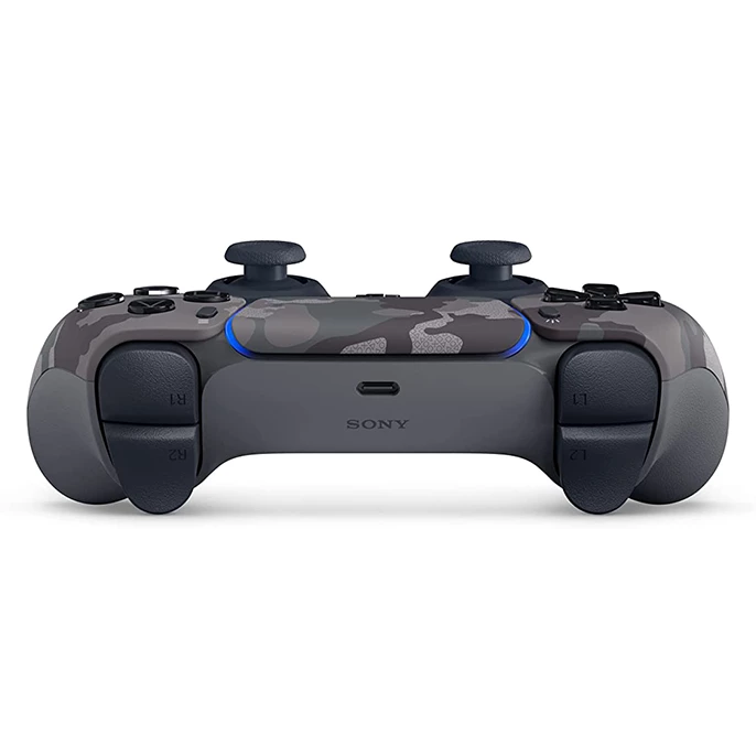 این دسته با رنگ ارتشی و جزئیات مشکی، ظاهری مینیمال دارد که بلافاصله توجه کاربران را به خود جلب میکند. استفاده از نورپردازی LED در اطراف تاچ پد جلوهای زیبا و مدرن را به این دسته بخشیده و هماهنگی مناسبی با کنسول PS5 ایجاد کرده است. ارگونومی و راحتی در طراحی DUALSENSE بهصورت کامل موردتوجه قرارگرفته است. دستهها با انحنای ملایم و بافت مات خود حس خوشایندی را به کاربران در هنگام کار با آن منتقل میکنند و از ایجاد لغزش در طول بازی جلوگیری میکنند. اندازه و وزن مناسب این دسته باعث شده تا در طولانیمدت دستها احساس خستگی نکنند. دکمههای این دسته نیز در فاصله مناسبی از هم قرارگرفتهاند تا دسترسی به آنها برای بازیکنان راحت و سریع باشد. در قسمت جلویی دسته، تاچ پد بزرگ و دکمههای PS، Share و Options قرار دارند. جویاستیکها با دقت بالا و حساسیت مناسب حرکات دقیق و روانی را فراهم میکنند.