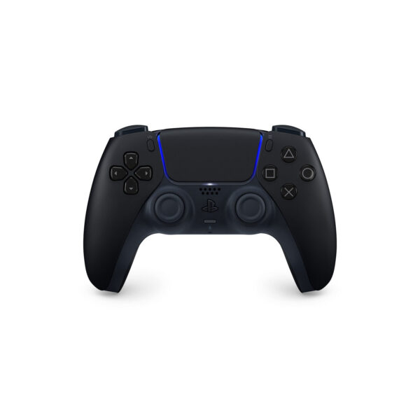 این دسته با رنگ مشکی و جزئیات مشکی، ظاهری مینیمال دارد که بلافاصله توجه کاربران را به خود جلب میکند. استفاده از نورپردازی LED در اطراف تاچ پد جلوهای زیبا و مدرن را به این دسته بخشیده و هماهنگی مناسبی با کنسول PS5 ایجاد کرده است. ارگونومی و راحتی در طراحی DUALSENSE بهصورت کامل موردتوجه قرارگرفته است. دستهها با انحنای ملایم و بافت مات خود حس خوشایندی را به کاربران در هنگام کار با آن منتقل میکنند و از ایجاد لغزش در طول بازی جلوگیری میکنند. اندازه و وزن مناسب این دسته باعث شده تا در طولانیمدت دستها احساس خستگی نکنند. دکمههای این دسته نیز در فاصله مناسبی از هم قرارگرفتهاند تا دسترسی به آنها برای بازیکنان راحت و سریع باشد. در قسمت جلویی دسته، تاچ پد بزرگ و دکمههای PS، Share و Options قرار دارند. جویاستیکها با دقت بالا و حساسیت مناسب حرکات دقیق و روانی را فراهم میکنند.